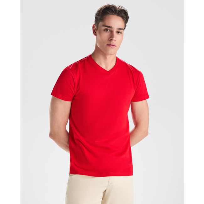 T-shirt manica corta tubolare con scollo a V a 2 strati, progettata per offrire comfort e resistenza. Le cuciture rinforzate su collo e spalle garantiscono una lunga durata. Questo modello è personalizzabile, perfetto per branding e eventi aziendali.