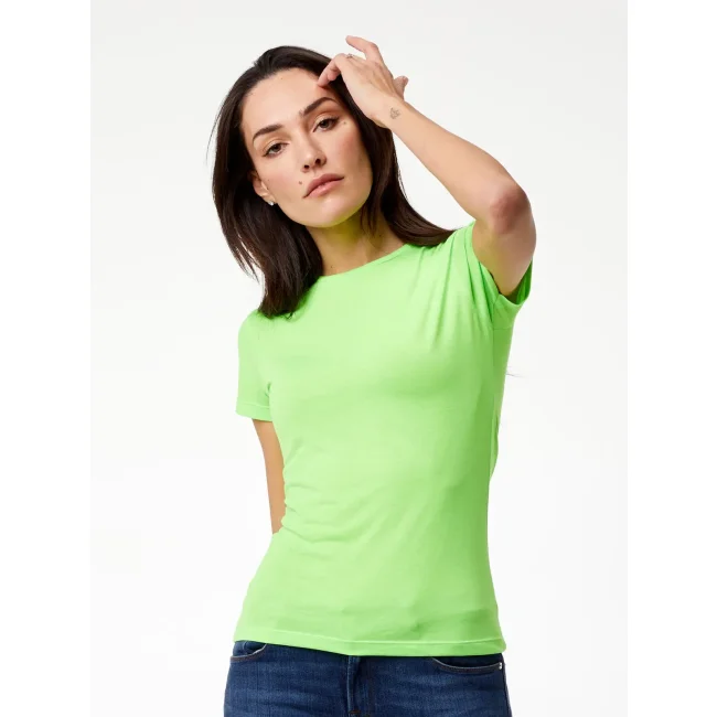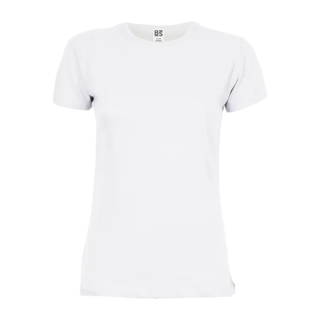 100% poliestere. T-shirt a maniche corte, struttura con cuciture laterali, costina in elastan a doppio strato, nastro di rinforzo alle spalle, etichetta satinata.