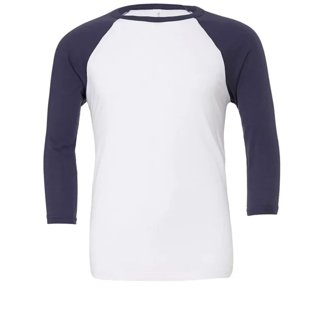 T-shirt Unisex 3/4 Sleeve Baseball Tee personalizzabile in cotone e poliestere