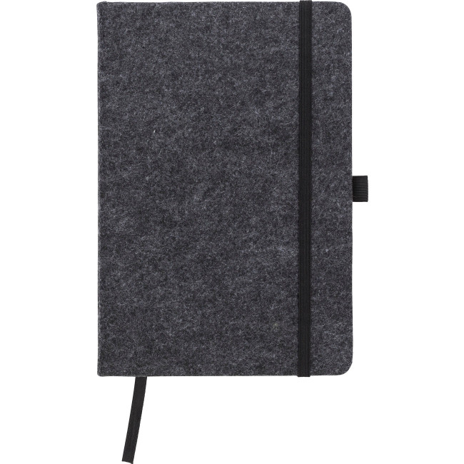 Taccuino in feltro rPET, formato +/- A5, 160 pagine a righe, passante per penna, elastico e segnalibro