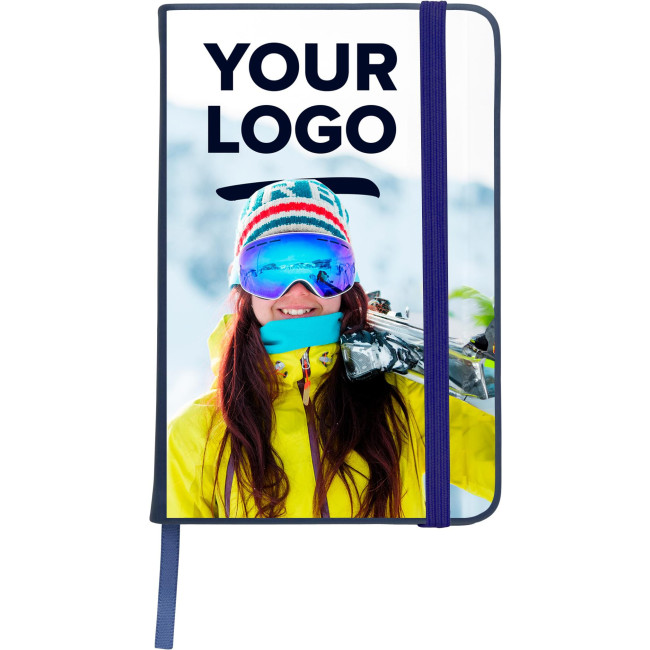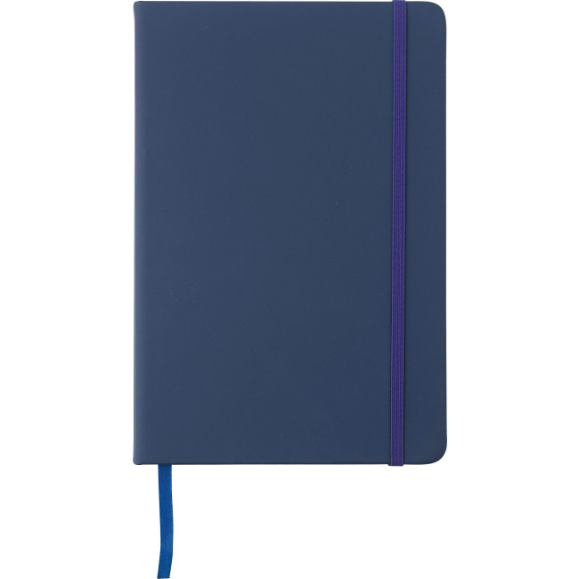 Taccuino in PU colorato, formato +/- A5, 96 pagine a righe, elastico e segnalibro in tinta
