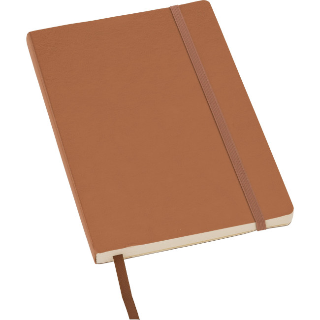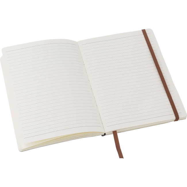 Taccuino in PU morbido e flessibile, formato +/- A5, 160 pagine a righe, tasca interna, elastico e segnalibro in tinta