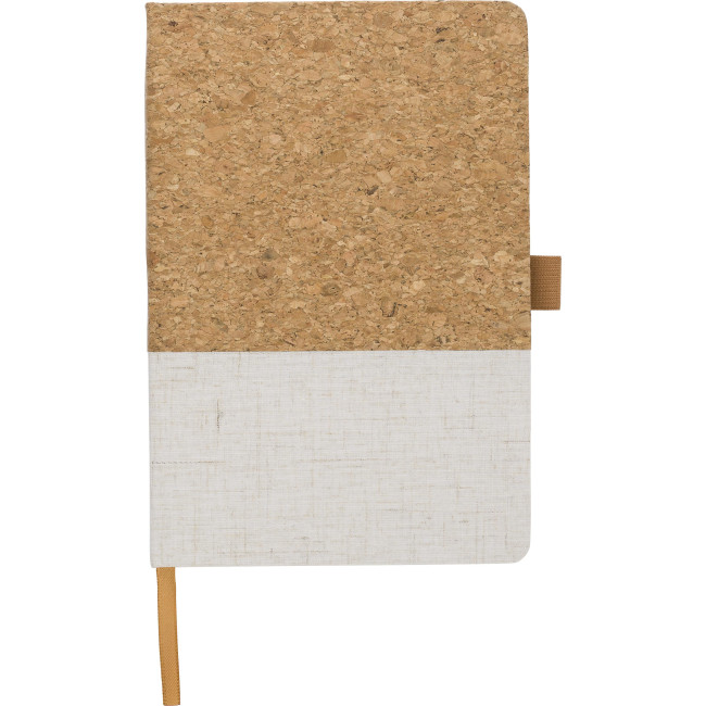 Taccuino in sughero e cotone, formato +/- A5, 80 pagine a righe, include passante per penna a sfera