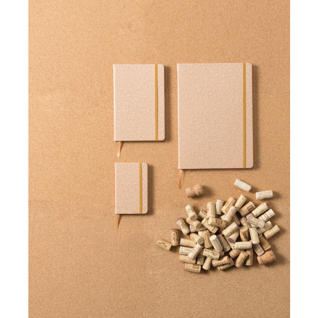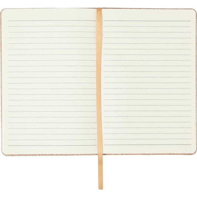 Taccuino in PU in sughero design, formato +/- A5, sughero design, 96 pagine a righe, elastico e segnalibro in tinta colore