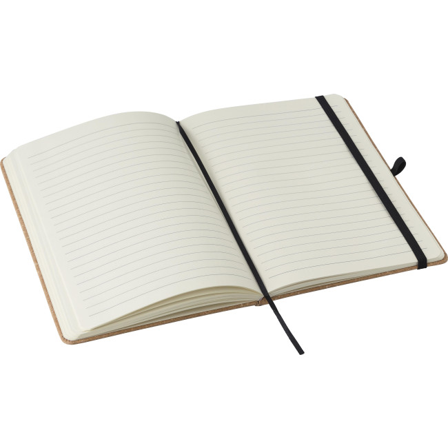 Taccuino in pelle riciclata, formato +/- A5, 200 pagine a righe 70 gr/m², elastico, segnalibro e passante per la penna, logo 'materiale riciclato' stampato a caldo sul retro