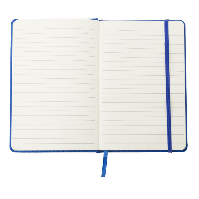 Taccuino in rPET e PU, formato +/- A5, 80 pagine bianche, elastico e segnalibro in tinta, carta 70 g/mq