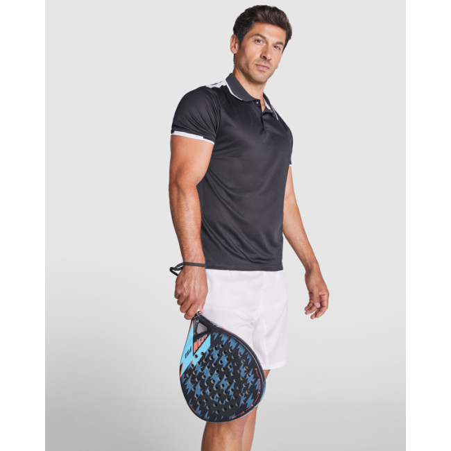 Polo tecnica da uomo a maniche corte in poliestere riciclato antibatterico. Colletto e maniche in costina 1x1. Copri cuciture rinforzate sul colletto. Abbottonatura con due bottoni a pressione. Spalle e dettagli a contrasto. Spacchi laterali sull'orlo.