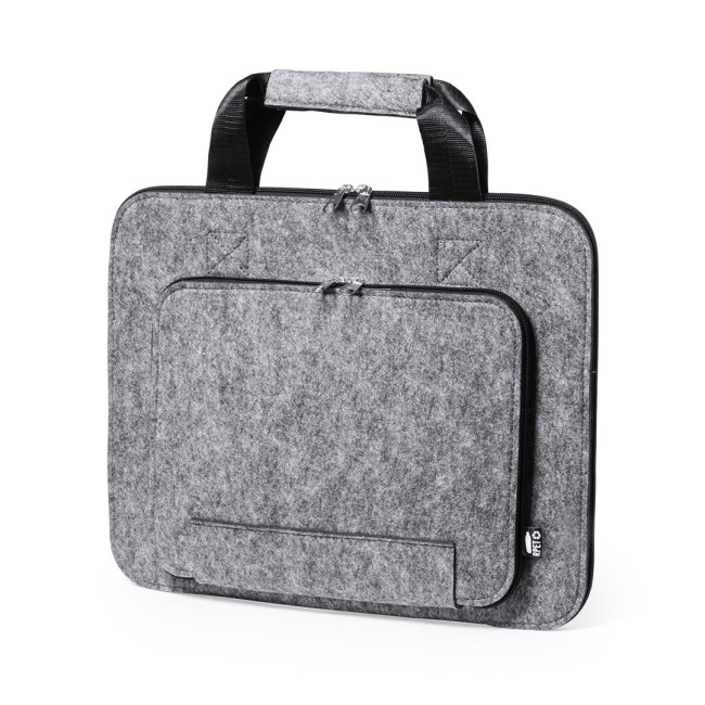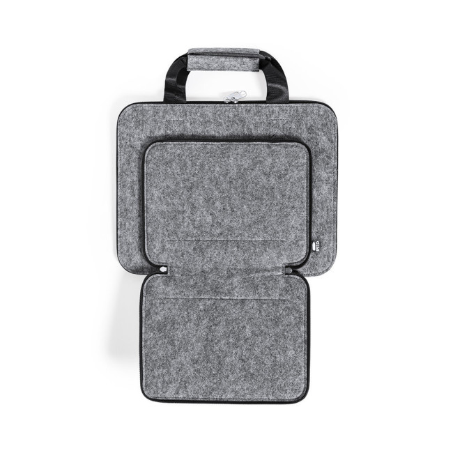 Portadocumenti dalla linea natura, in resistente feltro RPET riciclato, risultato della combinazione del processo di riciclaggio delle materie plastiche insieme alla tecnica millenaria di fabbricazione del feltro, ottenendo un materiale eco-trend che, oltre ad essere di origine riciclata, diventa anche riciclabile. Tasche principali e frontali con chiusura a zip e tiretti in metallo, con manici rinforzati abbinati e badge RPET sull'etichetta esterna.