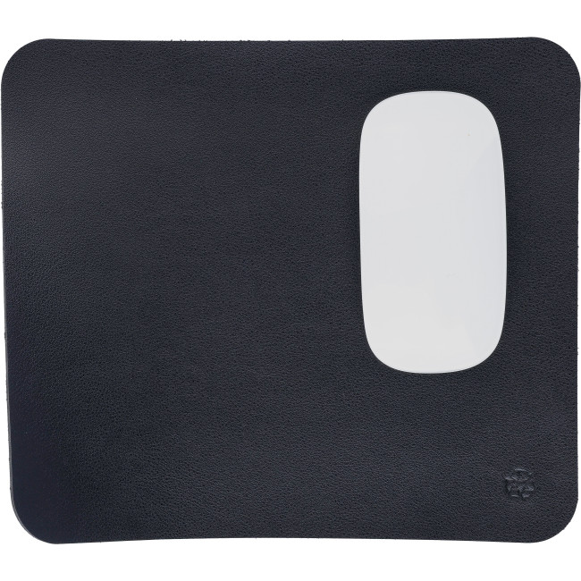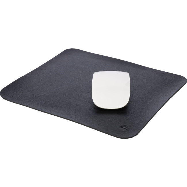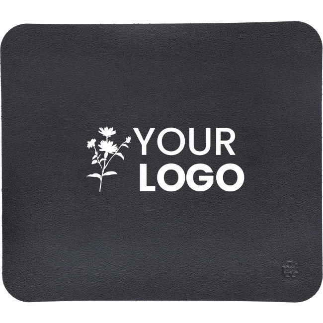Tappetino per mouse riciclato, dimensioni 22 x 18 cm, realizzato per il 58% da materiali riciclati, tra cui il 40% di rPET e il 18% di PU riciclato, include logo 'prodotto riciclato' sulla parte superiore, confezionamento sfuso