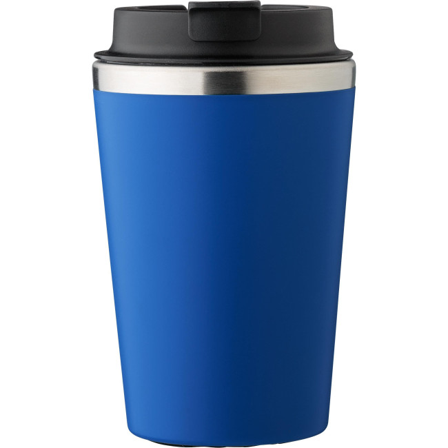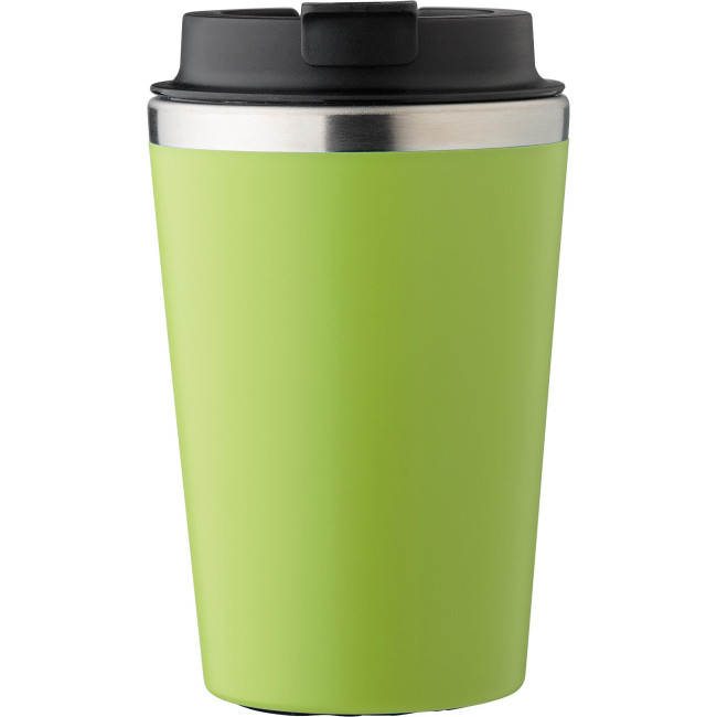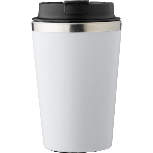 Tazza termica da viaggio, in acciaio inox e PP, coperchio ermetico ad anello pieghevole, confezionata singolarmente in una scatola in cartone avana, capacità 350 ml