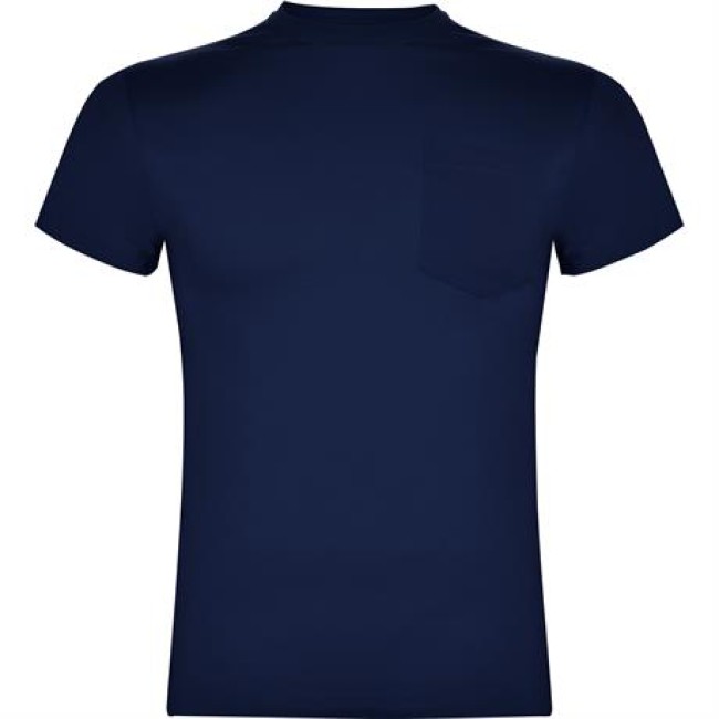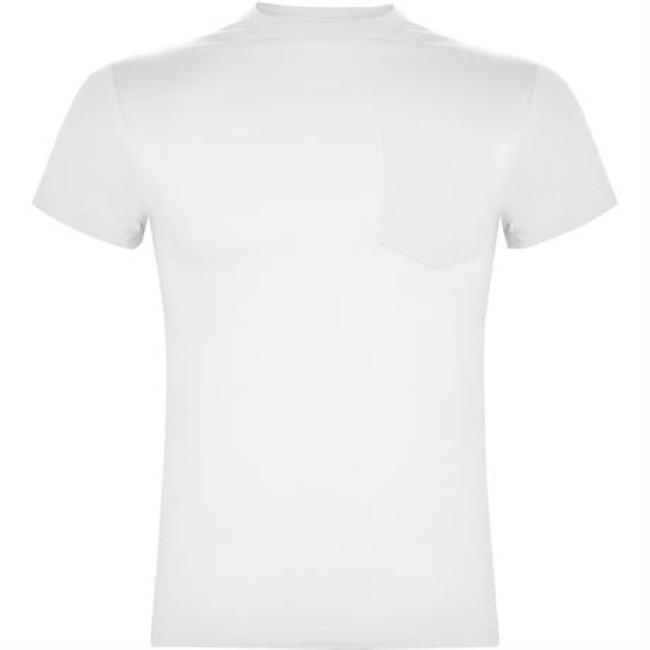 T-shirt girocollo manica corta e girocollo 4 strati. Copri cuciture rinforzate su collo e spalle. Cuciture laterali e taschino anteriore.