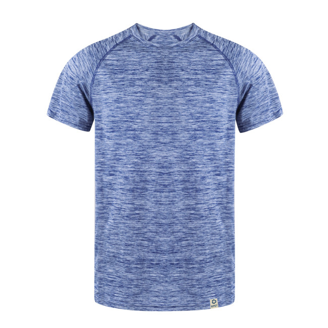 T-shirt tecnica taglia adulto in materiale RPET traspirante da 135g/m2 e tinta Space Dye. Con maniche raglan, girocollo ed etichetta con logo RPET. Disponibile in un'ampia gamma di colori Space Dye e nelle taglie XS, S, M, L ,XL,XXL.Il materiale RPET è realizzato con plastica riciclata, in modo da incentivare il riutilizzo dei rifiuti plastici e aiutare la sostenibilità del pianeta.