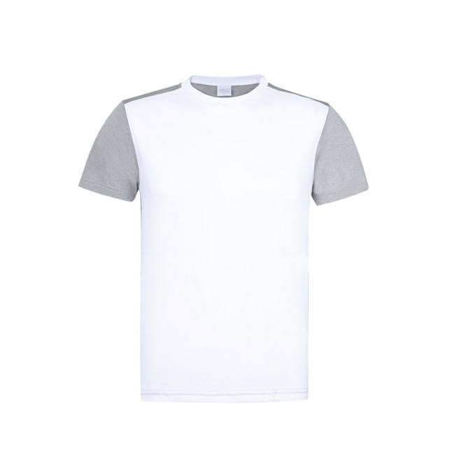 Camicia tecnica per adulti in poliestere / elastan traspirante 135g / m2. Elegante design bicolore, con frontale bianco, dettagli grigi sul retro. Disponibile nelle taglie S, M, L, XL, XXL. Colore bianco appositamente realizzato per la marcatura a sublimazione.
