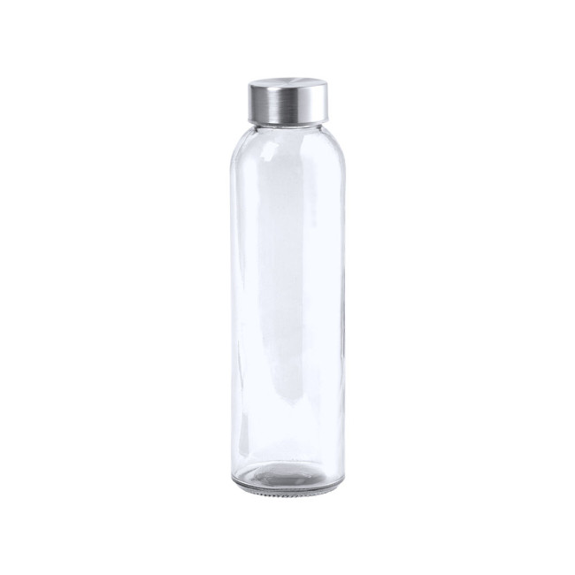 Borraccia in vetro di alta qualità da 500 ml, con corpo trasparente privo di BPA e tappo a vite in acciaio inox. Disponibile in un'ampia gamma di colori. Presentata in una scatola dal design accattivante.