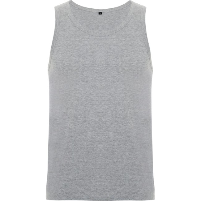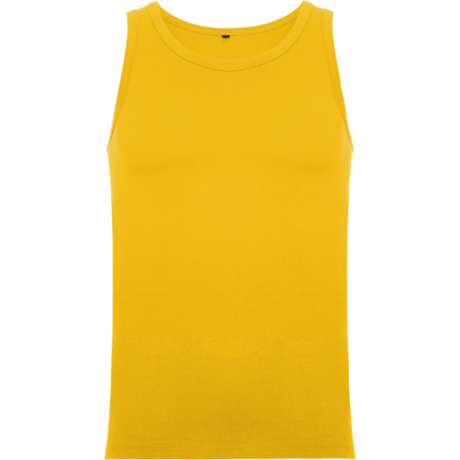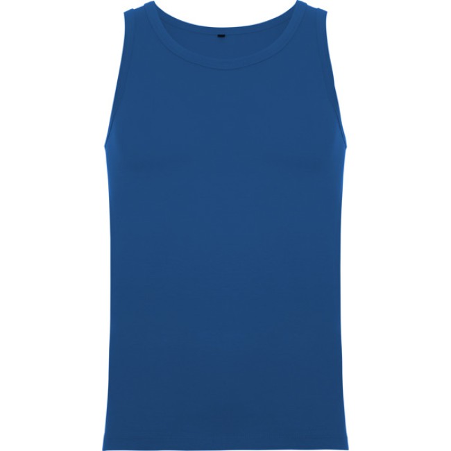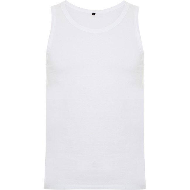 Canotta uomo ampia, taglio semiaderente, rifinita in singley jersey nello scollo e giromaniche. Cuciture laterali rinforzate a 4 fili per una maggiore durata.