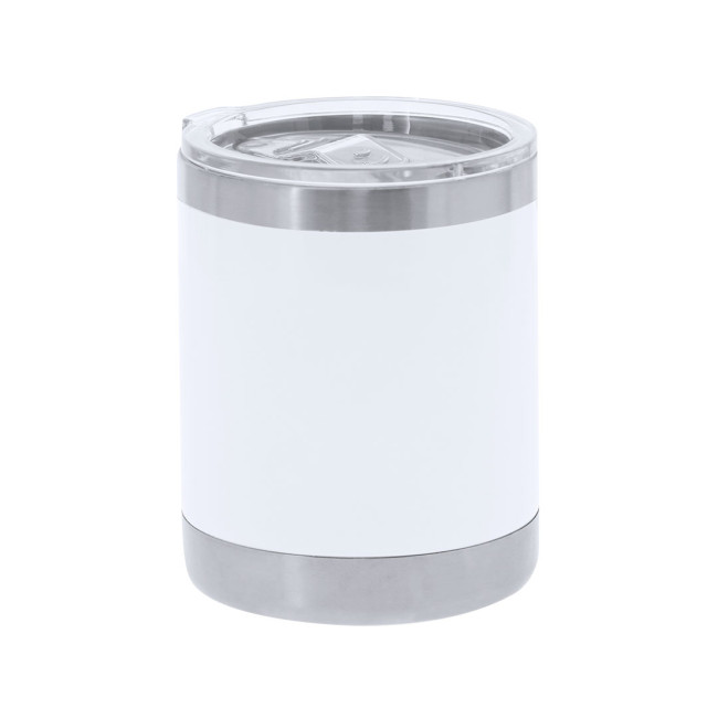 Vaso termico realizzato in acciaio inox a doppia parete e capacità di 380 ml. Progettato specificamente per la marcatura in sublimazione, finitura bianca lucida. Con dosatore apri-facile sul coperchio, privo di BPA. È ideale per avere sulla tua scrivania, tavolo o su qualsiasi superficie dove goderti tranquillamente la tua bevanda preferita.