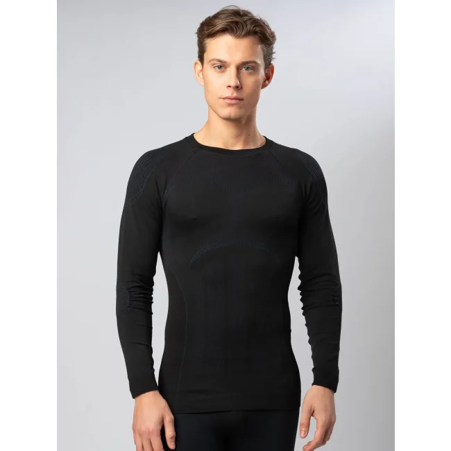 Maglia termica Thermo T, realizzata in un mix di nylon, polipropilene ed elastane. Presenta maniche lunghe raglan, rinforzi su fronte, schiena e maniche, e un collo in costina elasticizzata. La struttura tubolare e l'assenza di cuciture prevengono irritazioni, garantendo massimo comfort. Tessuto traspirante e termoregolatore, non rilevabile dai metal detector.