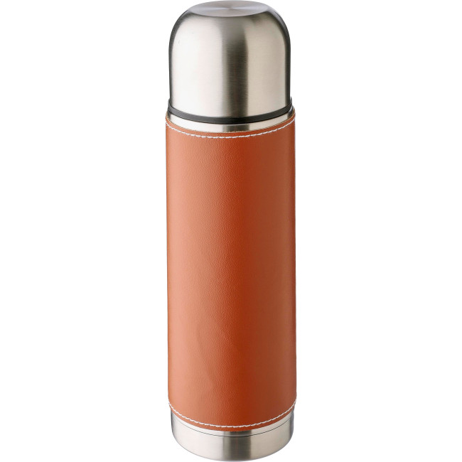 Thermos in acciaio inox 304, doppia parete, custodia protettiva esterna removibile in PU, confezionata singolarmente in una scatola in cartone avana, capacità 400 ml