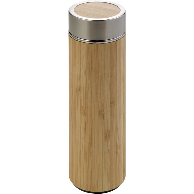 Thermos con rivestimento esterno in bamboo, doppia parete in acciaio inox, include infusore per il tè, capacità 420 ml