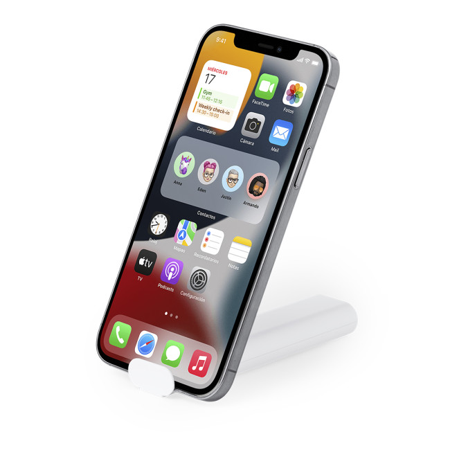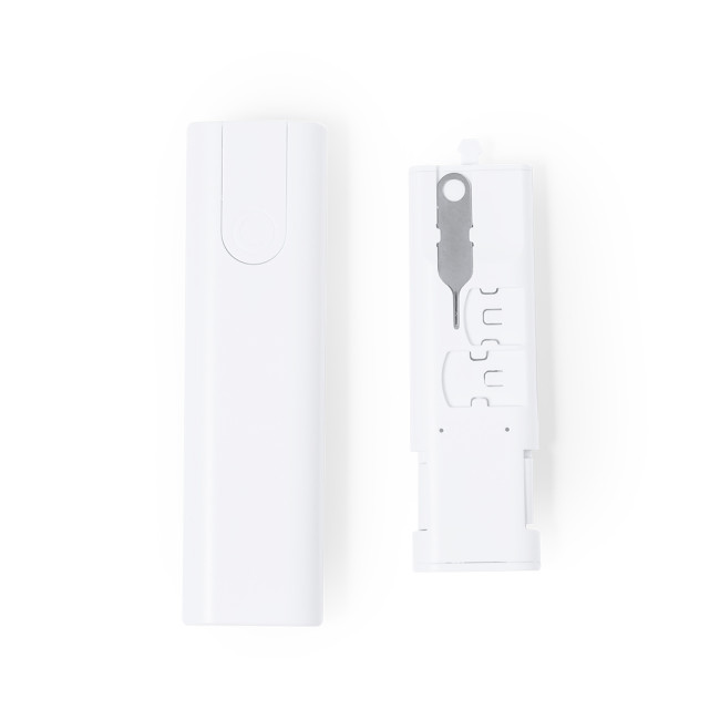Set completo di cavi di ricarica in ABS resistente. Confezionato in una custodia compatta in resistente ABS bianco, con supporto per smartphone integrato. Include cavo di ricarica e di sincronizzazione, adatto per il trasferimento di dati e per connessioni multiple: Micro USB, Tipo C e Lightning; espulsore SIM incluso. 5V DC 3A. Presentato in una scatola dal design kraft.