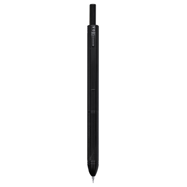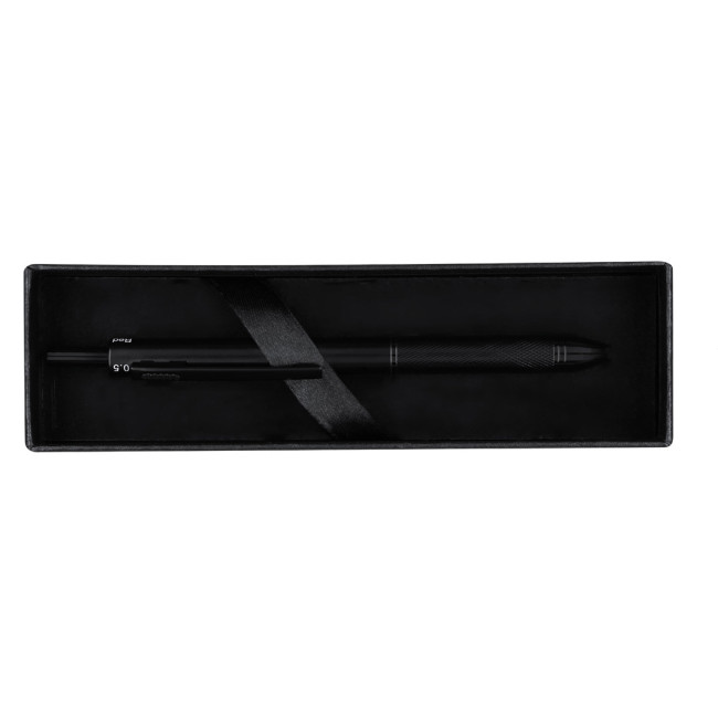 Penna 4-in-1 e matita meccanica realizzata in resistente alluminio, con meccanismo intelligente che consente la selezione del colore dell'inchiostro o della matita. Opzioni di inchiostro blu, nero e rosso e funzione di matita meccanica. Include 1 mina da 0,5 mm, con gomma integrata nel pulsante a pressione. Impugnatura ergonomica e clip di colore coordinato.