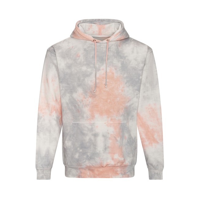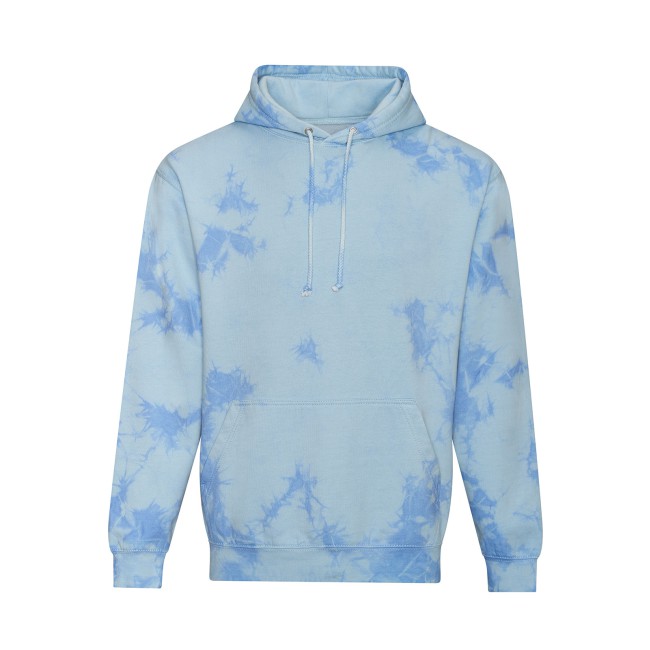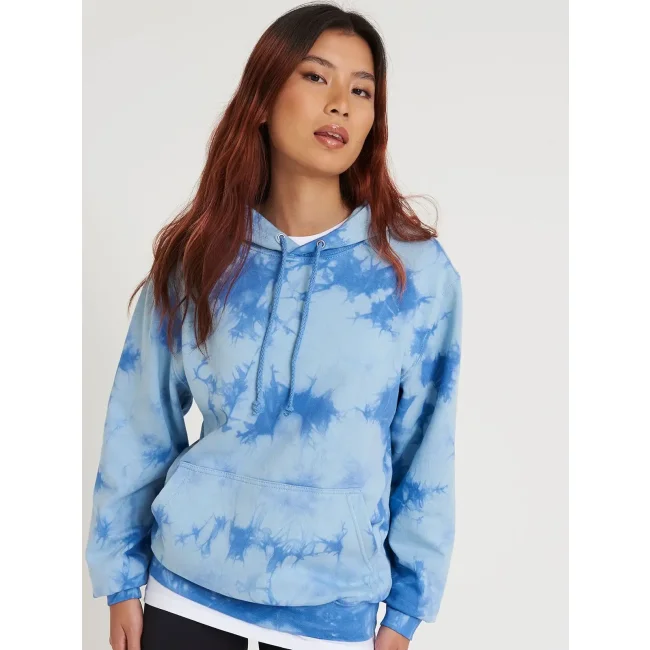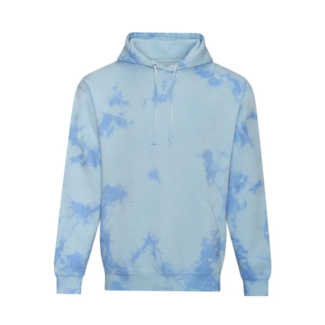 80% cotone, 20% poliestere. Felpa con cappuccio, felpata internamente, vestibilità comoda. Cappuccio a doppio strato con cordini tondi, tasca a marsupio, polsini e orlo a costine, cuciture doppie. Design tie-dye. Piccola etichetta taglia. Ogni pezzo è unico e originale.