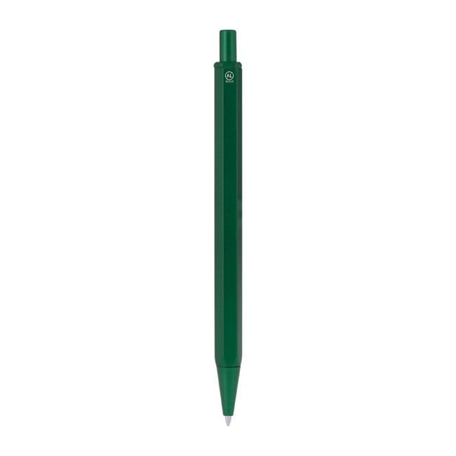 Elegante penna realizzata in Alluminio Riciclato. Corpo con forma esagonale distintiva. Con meccanismo a pulsante realizzato in ABS Riciclato e inchiostro blu. Con logo distintivo di Alluminio Riciclato marcato sulla canna.L'Alluminio Riciclato è un materiale con possibilità di riciclaggio quasi infinite, senza perdere le sue proprietà originali e consumando meno energia in questo processo.Certificazione GRS (Global Recycled Standard / Standard di Riciclaggio Globale), che garantisce l'origine riciclata del materiale utilizzato per fabbricare il prodotto.Il RABS è una plastica altamente riciclabile di grande resistenza e con molteplici applicazioni che lo rendono una soluzione eco-friendly. Con certificazione RCS, che garantisce l'origine riciclata e con logo RABS inciso.