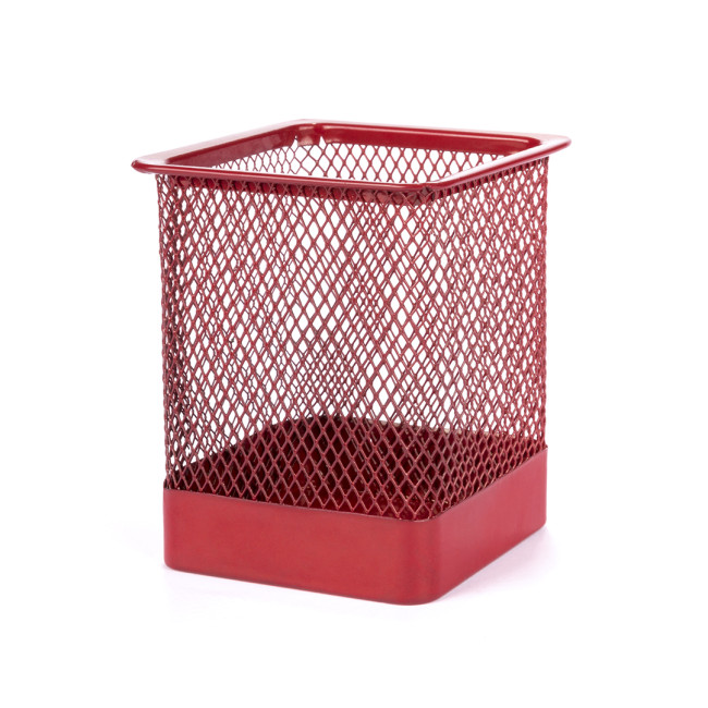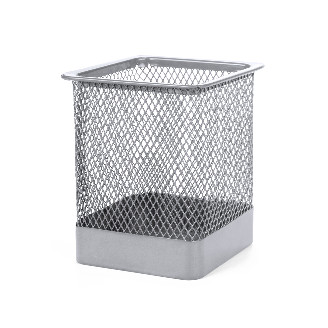 Portapenne a rete in metallo con finitura lucida e colori brillanti. Presentato in una scatola d'argento individuale.