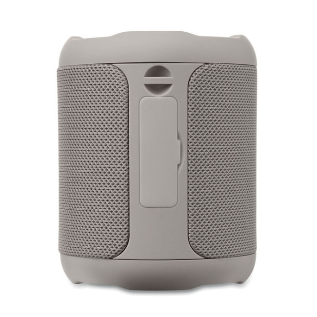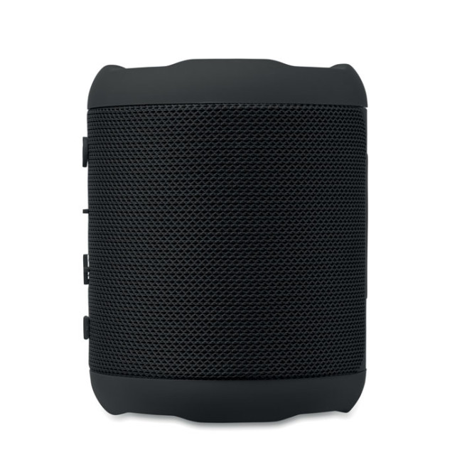 5.0 speaker wireless in ABS con tessuto RPET. 1 batteria ricaricabile Li-ION 800 mAh inclusa. Include una porta per schede SD e un cavo AUX/USB. Dati di uscita: 5W, 3 Ohm e 5V. Tempo di riproduzione di circa 3 ore.