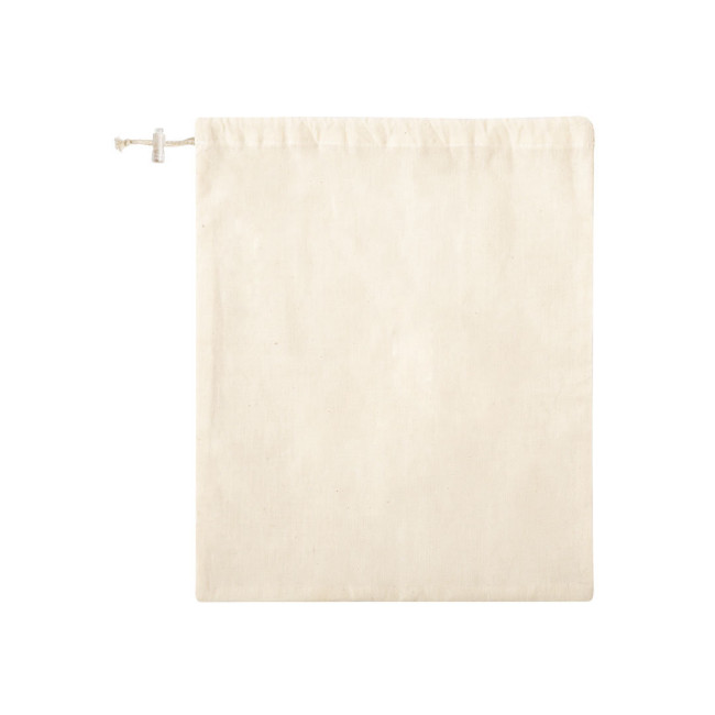 Borsa a rete linea Nature in cotone grezzo 120 g / m2, con lato liscio per la stampa. Chiusura con coulisse con accessorio di regolazione.