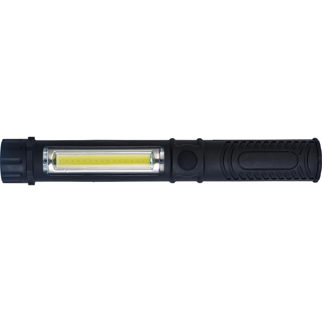 Torcia da lavoro in ABS, illuminazione con Led COB (Chip on Board) sull'estremità e sull'impugnatura, batterie incluse