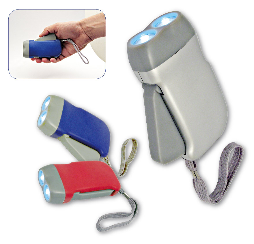 Torcia dinamo ricaricabile a mano con doppio led e laccetto