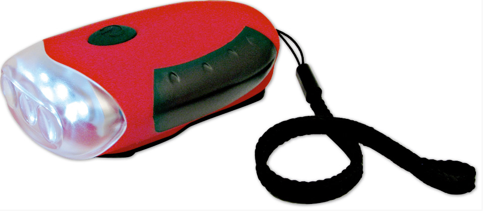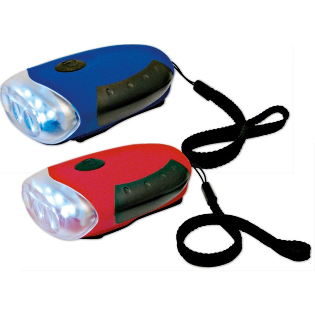 Torcia plastica gommata colorata accumulatore di energia, 3 led al alta luminosit? pratico laccetto confezione in cartonicino.
