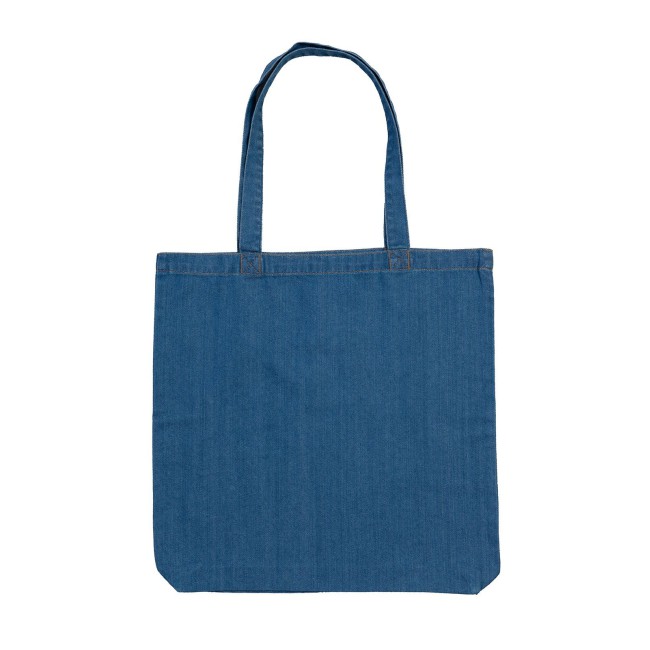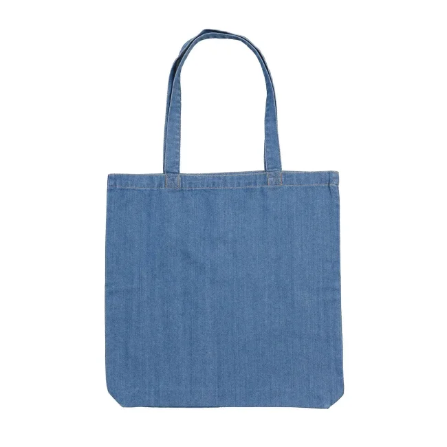 100% Jeans di Cotone Organico. Borsa tote in stile jeans, cuciture color arancio, soffietto, manici rinforzati, può essere portata sulle spalle, capacità 12 litri, etichetta strappabile. Taglia unica.