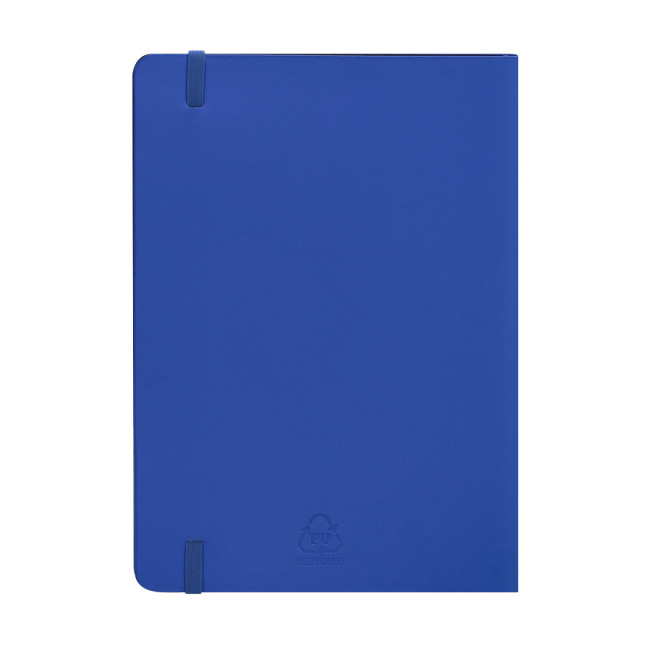 Notepad con copertine flessibili e realizzato in PU riciclato morbido. Con segnalibro e nastro elastico abbinato. Include 80 fogli color crema con disposizione a righe. Con il distintivo di PU riciclato. Il PU riciclato si distingue per la sua resistenza ed elasticità. Questo materiale riciclato e riciclabile è un'opzione sostenibile che salva le fibre scartate nei processi di produzione, minimizzando così gli sprechi materiali e contribuendo a ridurre l'impatto ambientale, mantenendo al contempo le sue proprietà originali.
