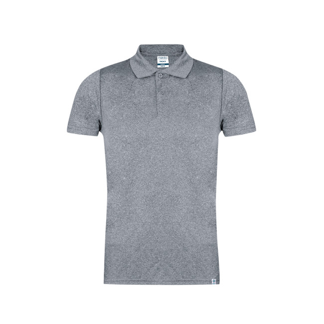 Polo tecnica unisex a maniche corte. Realizzata in tessuto 100% poliestere riciclato e colore effetto melange. La grammatura di 150 g/m2 lo rende un capo leggero, ideale per lo sport e per l'uso quotidiano. Tocco molto morbido e taglio moderno. Abbottonatura con due bottoni tono su tono. Tessuto traspirante, facile da lavare e ad asciugatura rapida. Orlo e maniche con doppie cuciture per garantire la durata e la resistenza all'uso intensivo. Etichetta facilmente rimovibile. Con etichetta esterna in RPET che indica il prodotto riciclato. Disponibile nelle taglie XS, S, M, L, XL e XXL.
