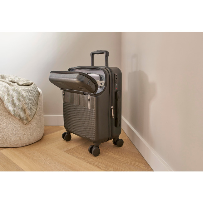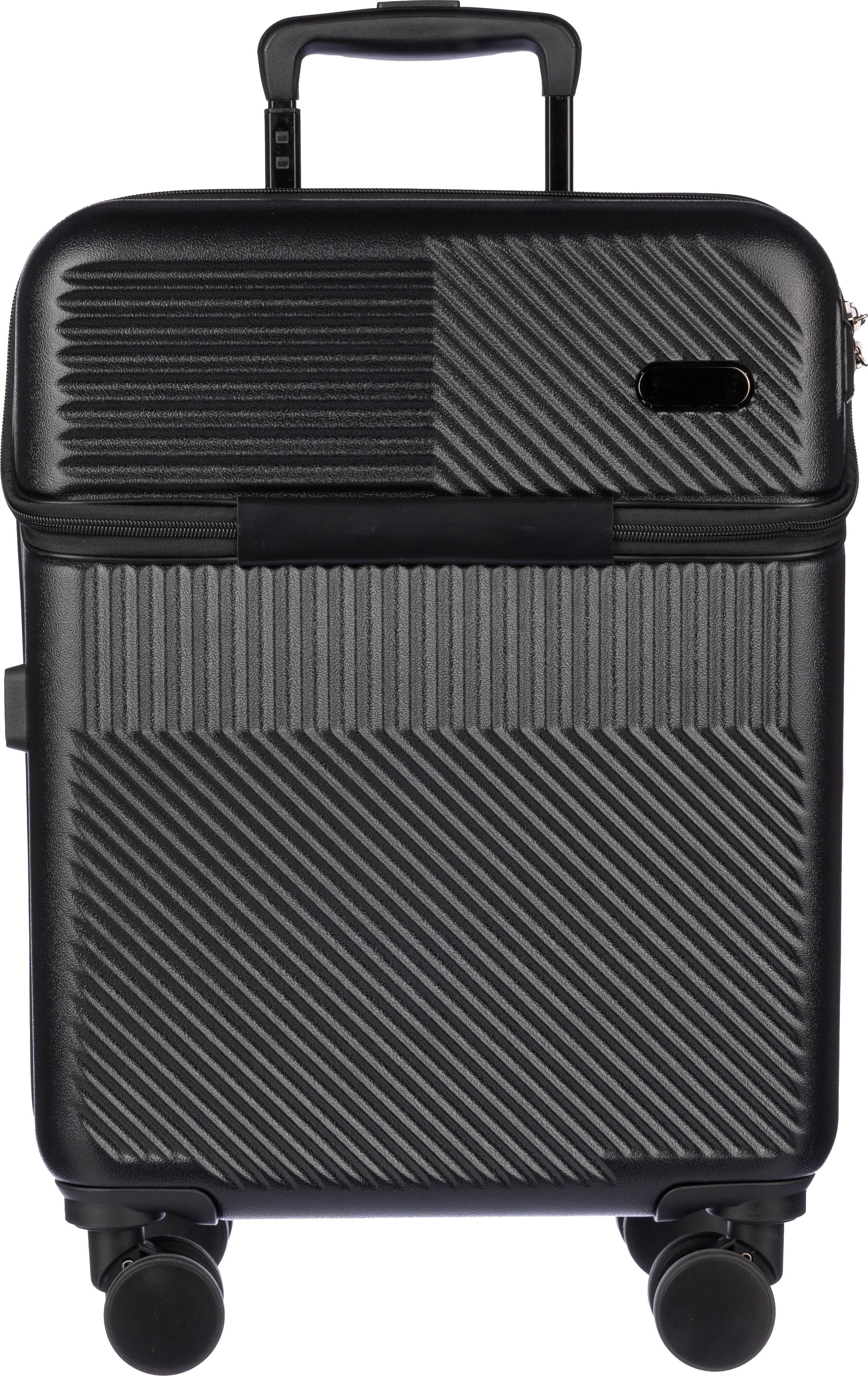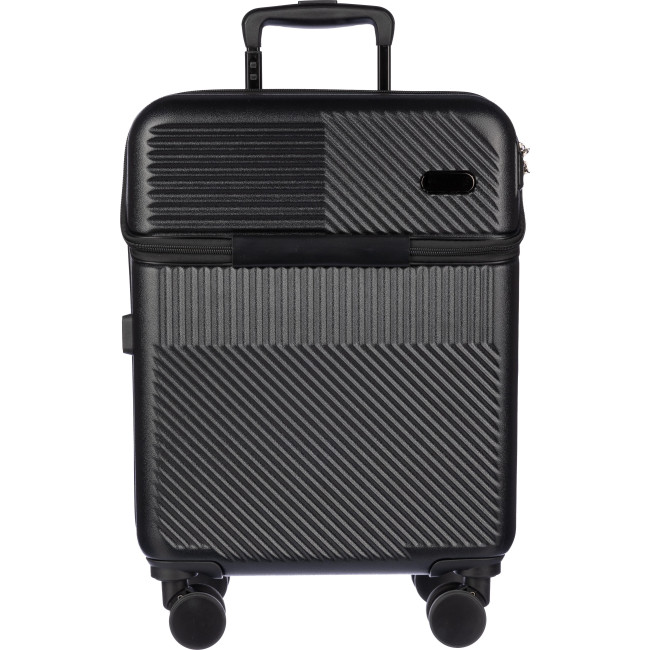 Trolley in ABS da 20 pollici, scomparto portacomputer accessibile tramite chiusura lampo, 8 ruote, manico estensibile su tre livelli, include chiusura con tre lucchetti a combinazione digitale, porta USB, placca di metallo per la personalizzazione laser.