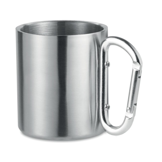 Tazza con moschettone, doppio strato in acciaio inossidabile. 220 ml.