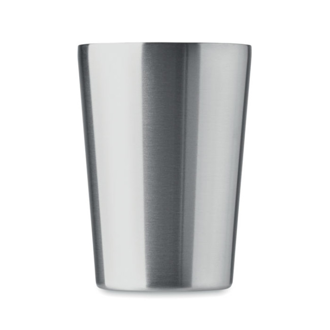 Bicchiere a doppio strato in acciaio inossidabile riciclato (90% acciaio inossidabile riciclato e 10% acciaio inossidabile) con custodia rimovibile in pelle PU. Coperchio con foro di sorseggio scorrevole. Senza perdite. Capacità: 350 ml.