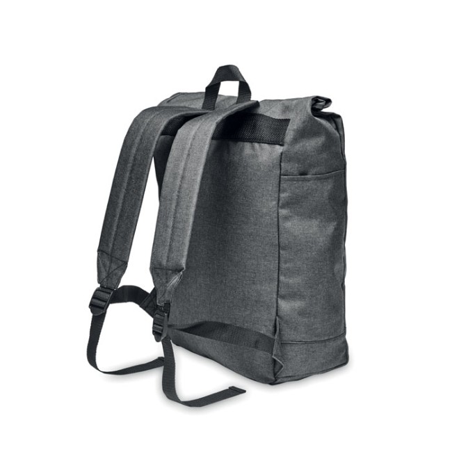 Zaino a 2 toni realizzato in poliestere 600D RPET con una chiusura superiore a rotolo. Questa borsa elegante è ideale per l'uso quotidiano per la scuola, il lavoro o altre attività. Abbassate la parte superiore per chiudere la borsa e renderla più compatta e sicura. È possibile regolare le cinghie posteriori per una vestibilità confortevole. La borsa è realizzata in plastica PET riciclata. Peso limite di trasporto 5kgs.