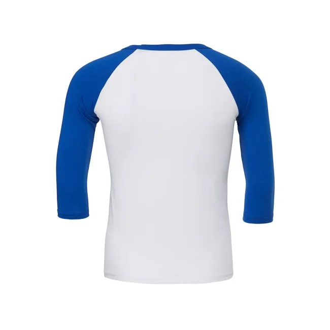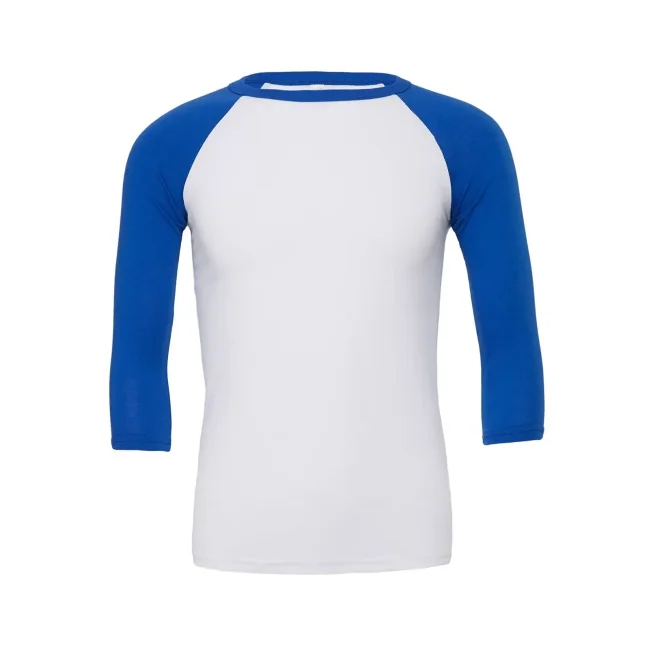 52% cotone pettinato ring-spun, 48% poliestere. T-shirt baseball manica 3/4 raglan, girocollo di colore contrastante. Vestibilità moderna, struttura con cuciture laterali.