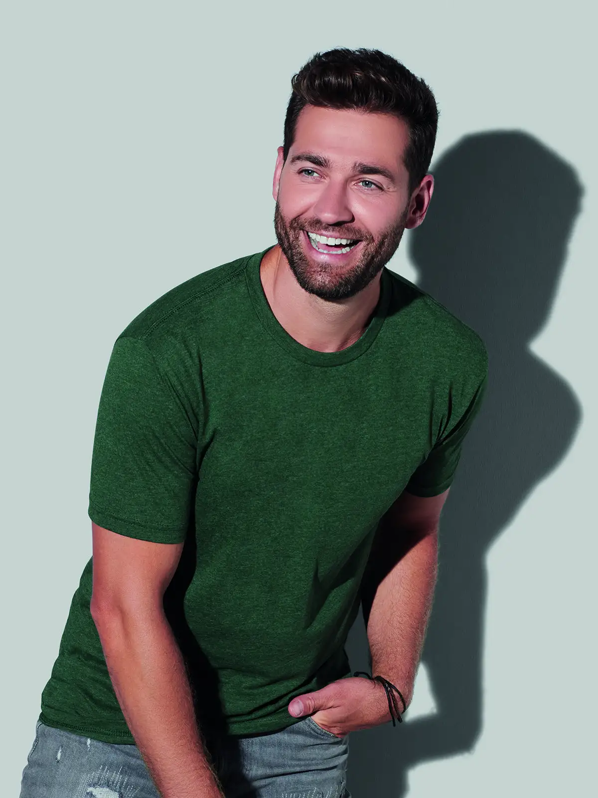 60% cotone ring-spun, 40% poliestere. Modello unisex, pregiato cotone pettinato da filatura ad anello, disponibile in 20 colori, nastro di rinforzo da spalla a spalla, cuciture laterali.