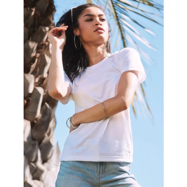 25% cotone, 50% poliestere, 25% viscosa; filato ad anello pettinato; jersey semplice. Modello unisex - perfetto sia per lui, che per lei, pregiato cotone pettinato da filatura ad anello, disponibile in 10 colori, nastro di rinforzo da spalla a spalla, cuciture laterali.