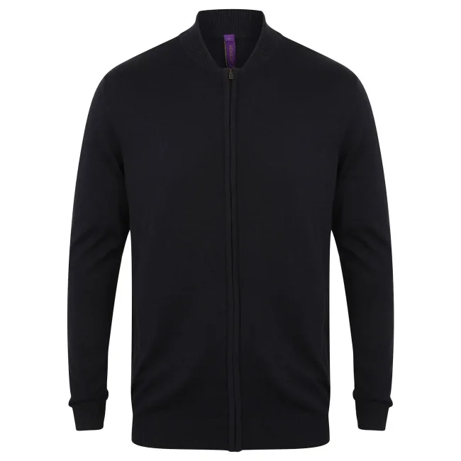 50% cotone 50% acrilico. Bomber unisex a maglia fine con manica semi-modellata, apertura frontale con zip in metallo, tasche frontali.