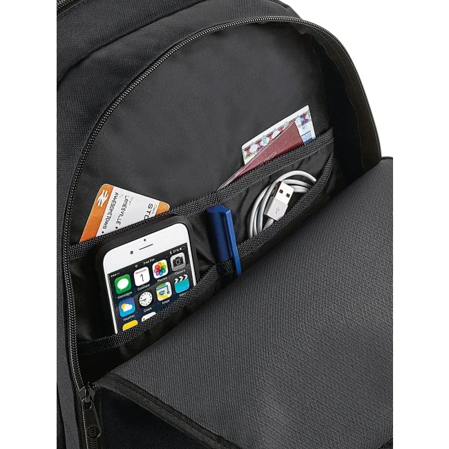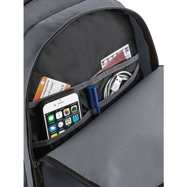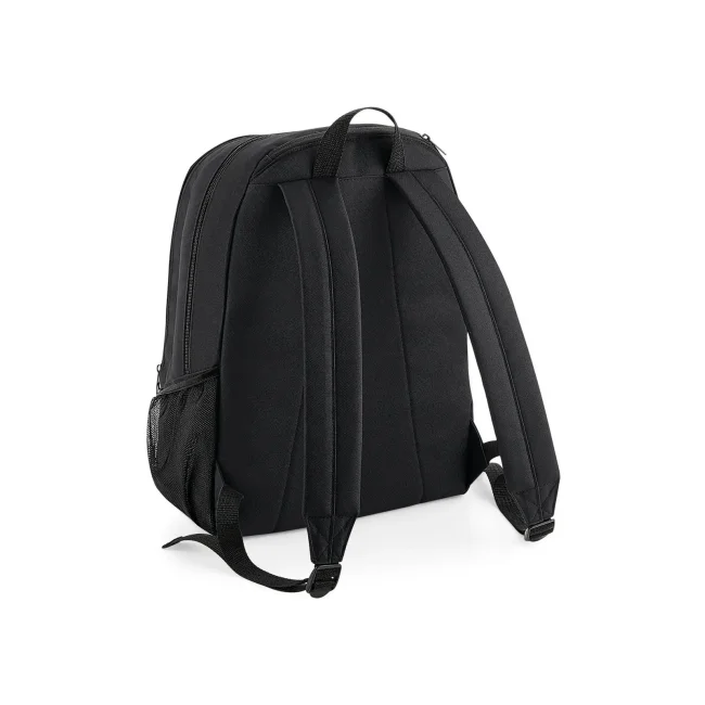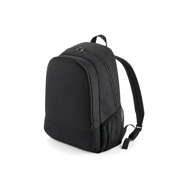 Universal Backpack realizzato in poliestere 600D, dotato di tasca superiore con zip e sezione organizer interna. Le dimensioni sono 30 x 42 x 20 cm, con una capacità di 18 litri, pannello posteriore imbottito e spalline regolabili, ideale per personalizzazione.