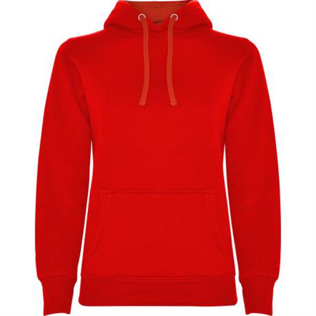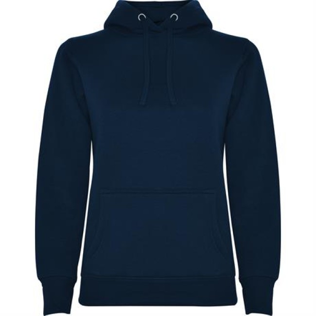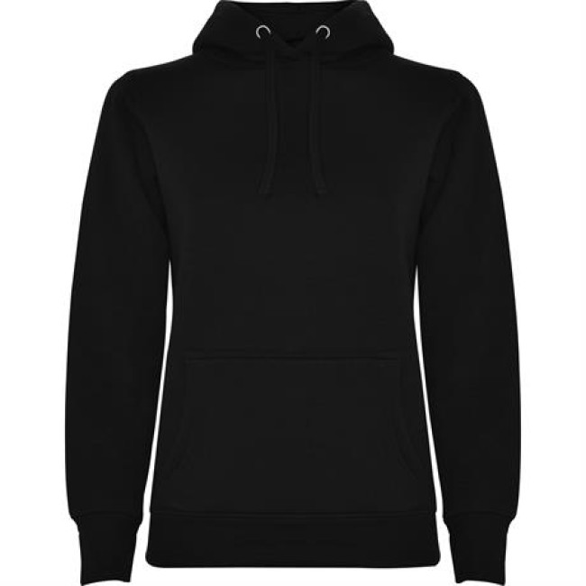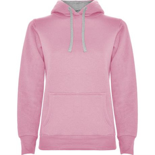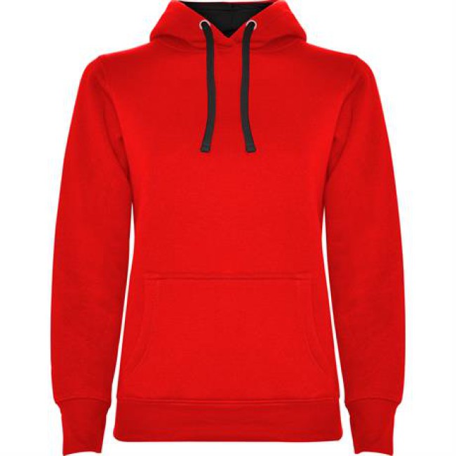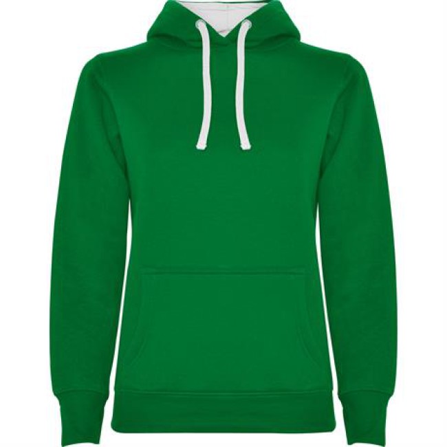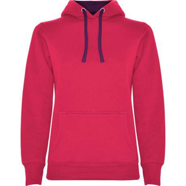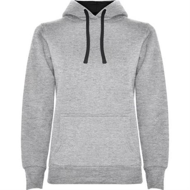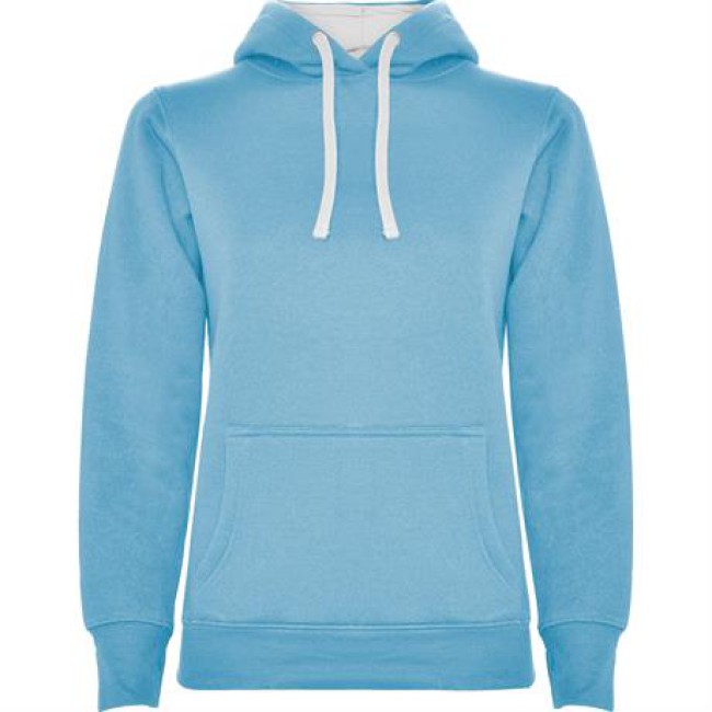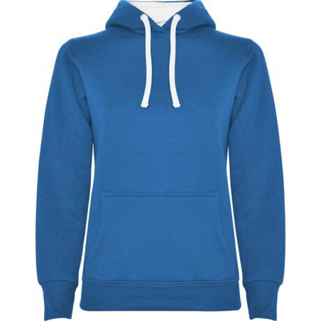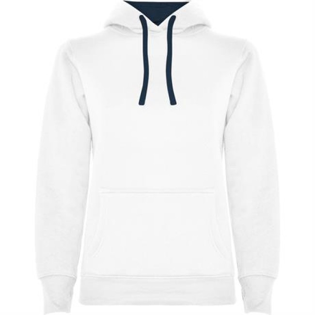 Felpa slim fit dal taglio femminile con cappuccio bicolore in doppio tessuto, con coulisse regolabile in contrasto, copri cuciture sul collo e tasca a marsupio. Costina con elastan 1x1 su polsini e girovita. Dettaglio fessura per il pollice - polsino a costine con foro per il pollice.