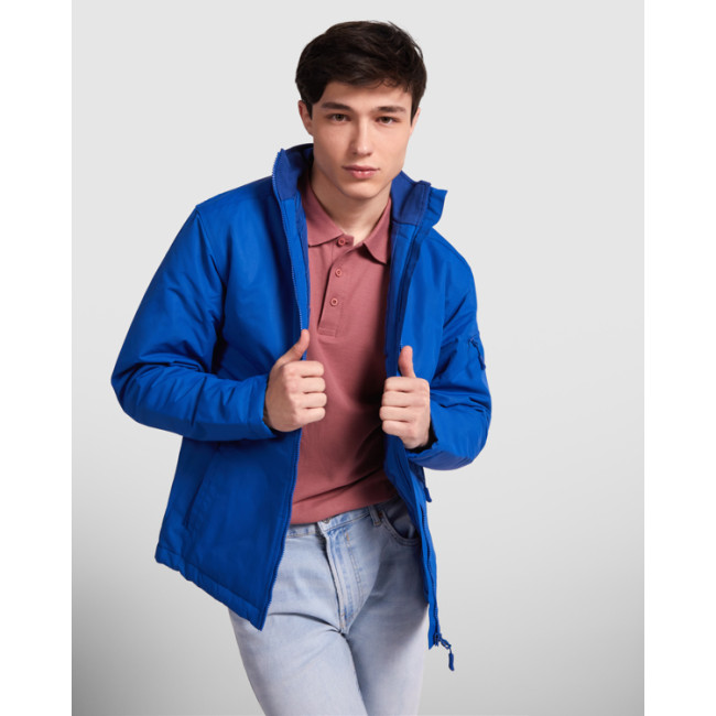 Giacca imbottita in tessuto molto resistente. Collo alto con interno foderato a costine 2x2.· Cerniera anteriore in tinta con protettore per il mento.· Due tasche anteriori doppia funzione. Comprende un tasca aperta ed una con cerniera.· Tasca con cerniera ed abbottonatura sulla manica sinistra.· Tasca interna con cerniera lato sinistro.· Regolatori con elastico all'interno nel girovita.