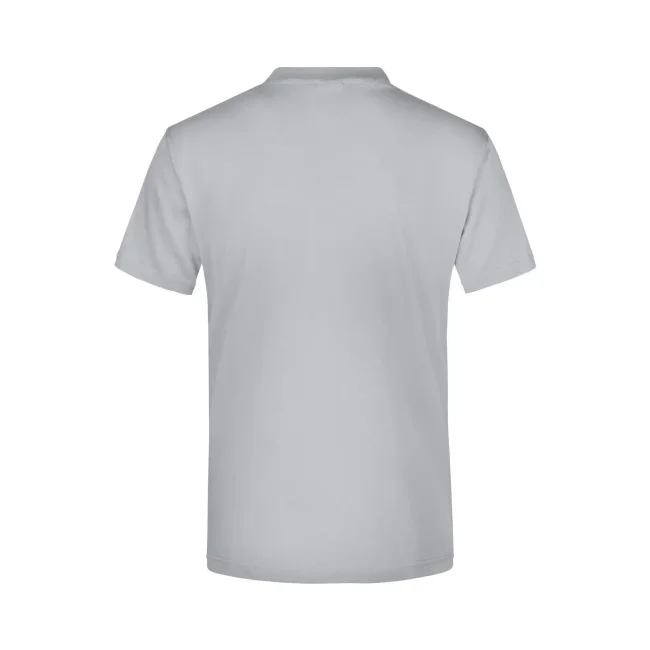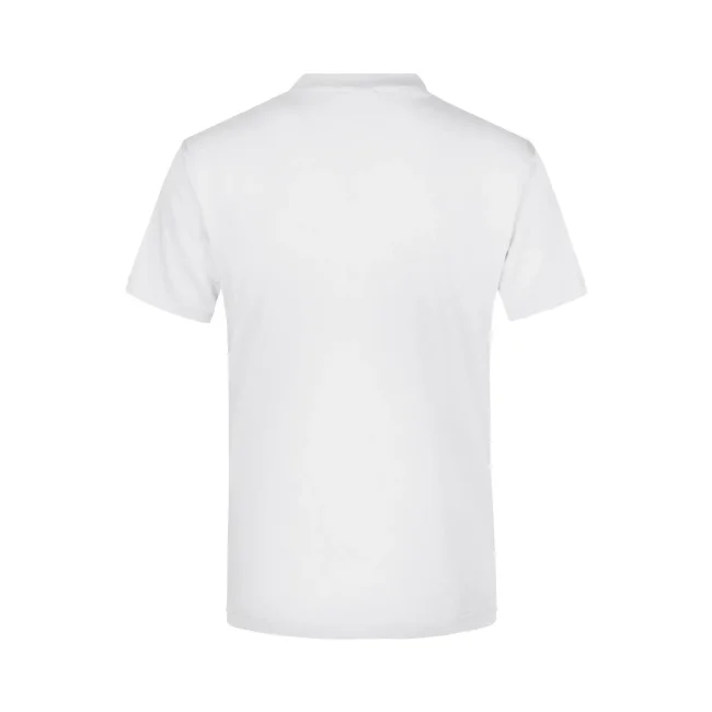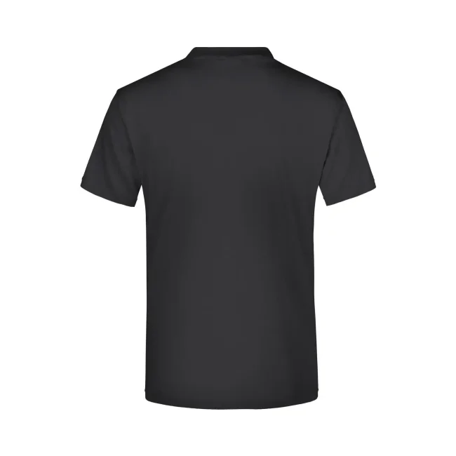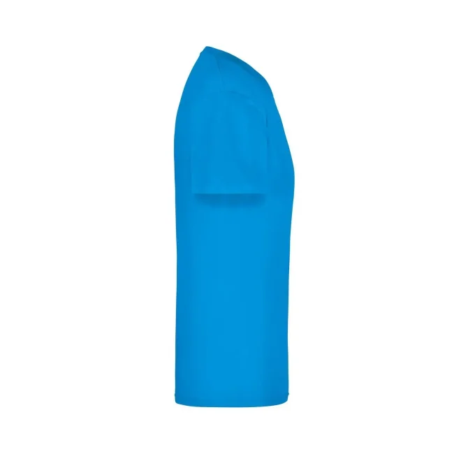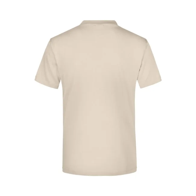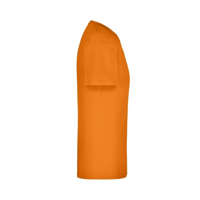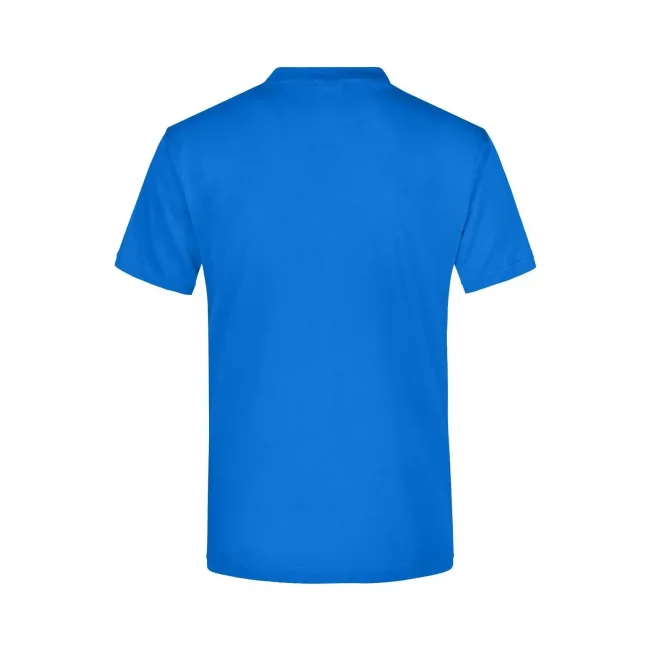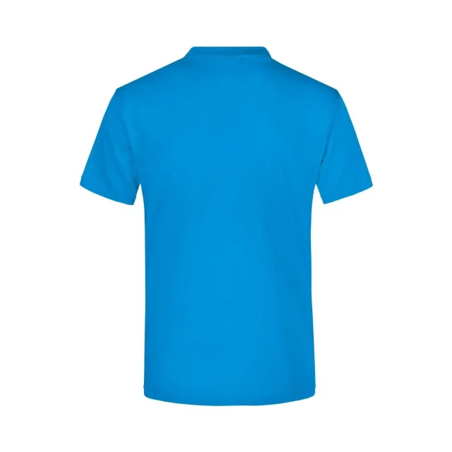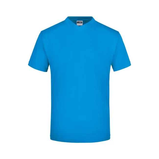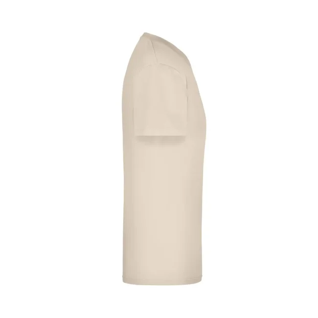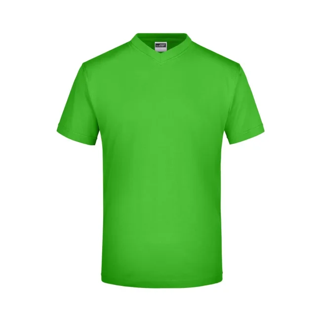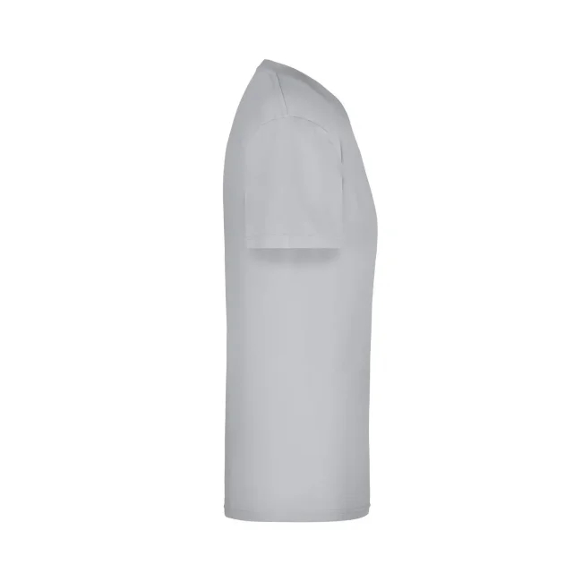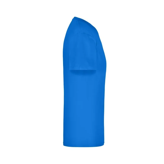100% cotone. T-shirt comfort in single jersey, Collo a V con elastan. Senza cuciture laterali, necktape. Cuciture doppie sulle spalle, sullo scollo e sul giromanica. Tessuto esterno (150 g/m²). Manica corta, senza cuciture laterali.