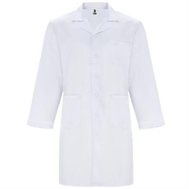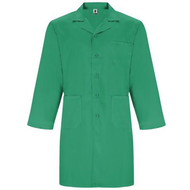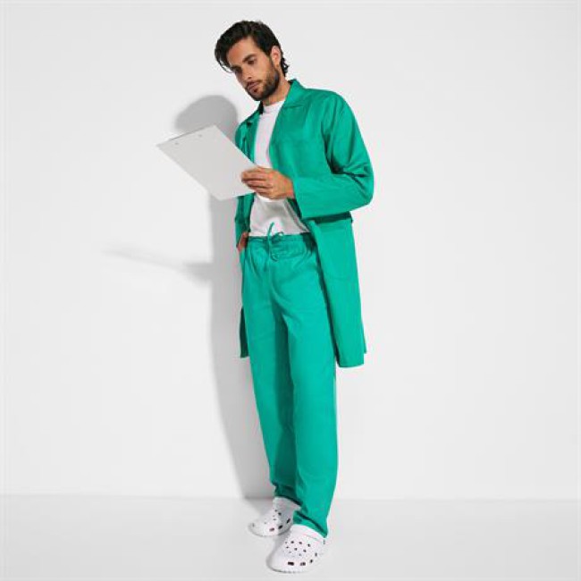 Camice di servizio manica lunga:· Collo con bavero.· Apertura centrale con 5 bottoni in tinta.· Una tasca sul petto e due laterali.· Cinturino posteriore.