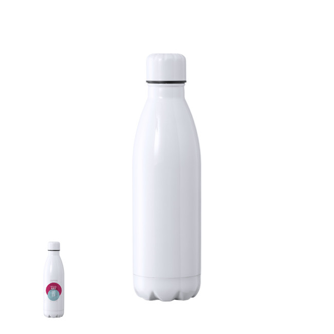 Borraccia termica da 500 ml, realizzata in acciaio inox a doppia parete e progettata appositamente per la stampa in sublimazione. Finitura bianca lucida con tappo a vite BPA-free abbinato. Confezionata singolarmente in una scatola dal desing kraft .Manuale di istruzioni disponibile in spagnolo e inglese.